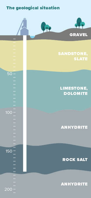 The geological conditions of our mines are ideal. Thick layers of rock and salt separate your waste from the biosphere safely and without a need for further treatment. The waste is stored in the salt rock at a depth of 180 m and is completely sealed off from the salt there.